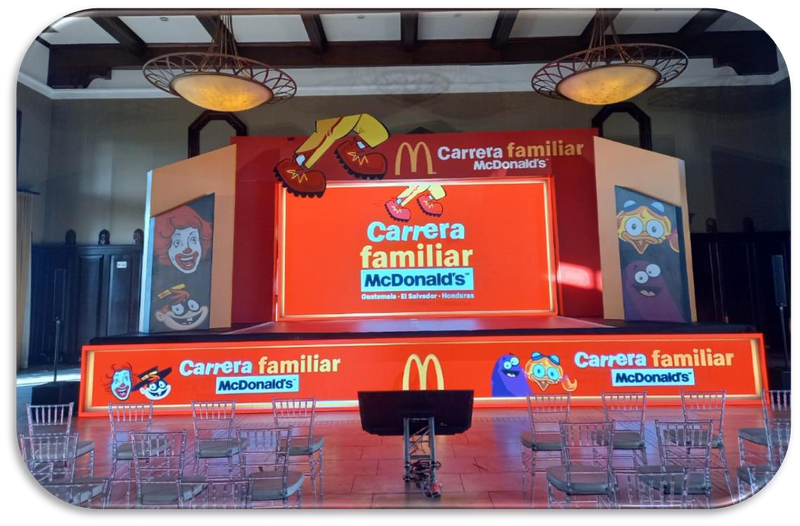 Diseñamos y producimos ambientes personalizados para eventos corporativos, activaciones de marca, presentaciones de productos y espectáculos, asegurando impacto visual y una conexión única con la audiencia.